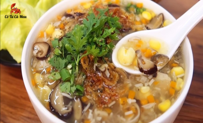 Sau đó, bạn hãy phi thơm hành tây, cho nước vào nồi và cho lần lượt các nguyên liệu vào. Cuối cùng hãy cho thêm sữa tươi, bột bắp nấu cho sánh lại rồi tắt bếp, cho thêm hành ngò vào.